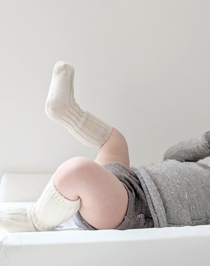 La laine mérinos garde les pieds bien au chaud quand il fait froid et au frais quand les températures remontent. Naturellement respirante, elle garde les p’tits pieds au sec pour des pieds confortables toute l’année.